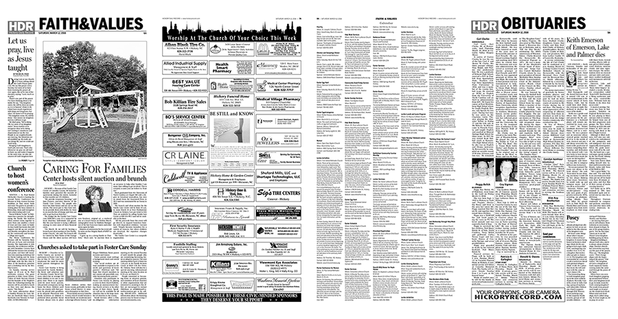 From full-color spreads like The Shelby Star to black & white features like the Hickory Daily Record, KW News can help create the section that best suits your needs.